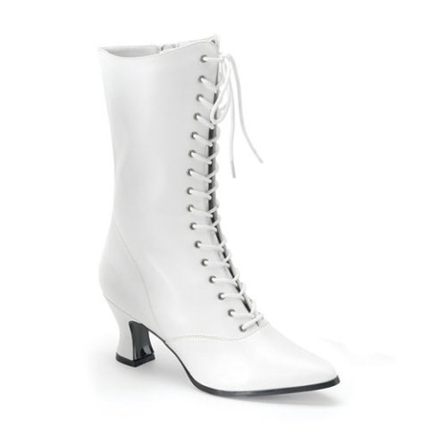 WHITE LACE UP SHORT BOOTS - FANCY DRESS. Ideal For Victorian & Western Saloon Girl Theme. Ladies Size US 11 (UK 8-9). GREAT PAIR OF LACE UP WHITE MID CALF BOOTS. HEEL MEASURES 2.5"/7cm. BOOT HEIGHT 13"/33cm. LENGTH OF SOLE 10"/25.5cm (pointed toe). Synthetic Boot with Lace-up Front, Zip Side & Non-Slip Plastic Soles. See our other store items for more sizes.