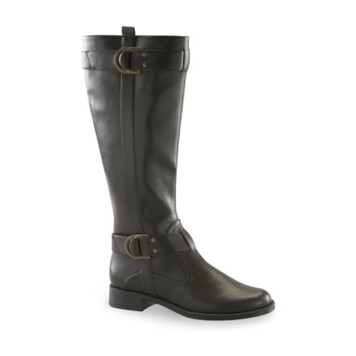 This tall riding boot puts a flex in your step with a diamond pattern outsole that also absorbs impact and helps keep you steady. Classic, clean lines, a low heel and brass ornamental buckles give the boot a look that you can dress up or down. The faux leather upper features a side zipper that makes it easy to put on or take off, and a full, rounded toe box gives toes plenty of wiggle room. Click here to view the benefits of the Diamond Pattern Sole..