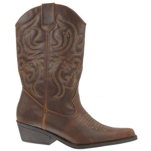 With the Sanguine boots from Madden Girl, your modern flair for western style shows everyone that it's not your first time at the Rodeo. These stylish easy pull-on boots feature a genuine leather upper with a western-style stitching pattern and pointed western toe. Soft leather lining and padded footbed provides a comfortable interior. A moderate stacked heel and durable synthetic sole provide you with stability and lasting wear.